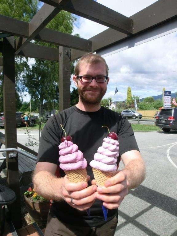 Kulinarisch ist hier alles sehr englisch. Hervorragend ist der frische Fisch an der Küste und das selbst gemachte Eis aus frischen Früchten. Man mischt eine Grundmasse (könnte Sahneeis sein) mit angefrorenen frischen Früchten nach Wahl. Da hier alles wächst, ist die Vielfalt enorm. Wir entschieden uns für frische Kirschen mit Banane.