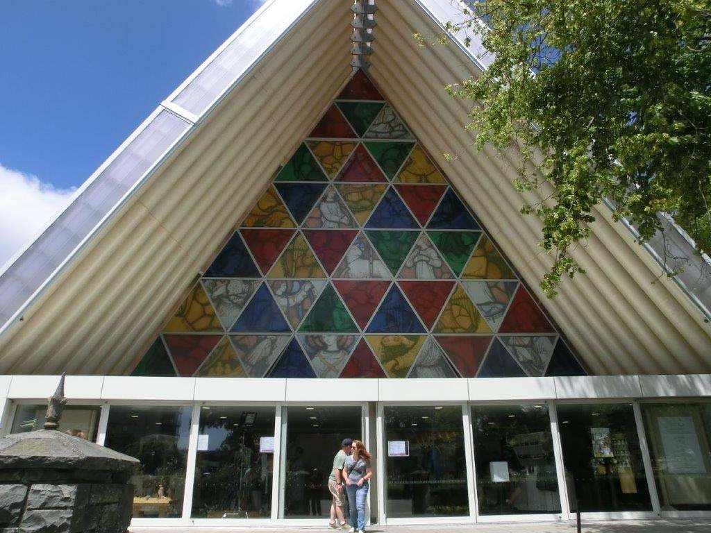 Es gibt tatsächlich eine Kirche, die mit Rohren aus Pappe gebaut ist. Diese Rohre sind mit Dachlatten verbunden und darauf wurden dann die Dachplatten befestigt. Dieser Bau war auch deshalb sehr ungewöhnlich, weil man erst durch den giftshop im Eingangsbereich musste, bis man in den Hauptraum kam. Es fand auch gerade ein chinesischer Gottesdienst dort statt.