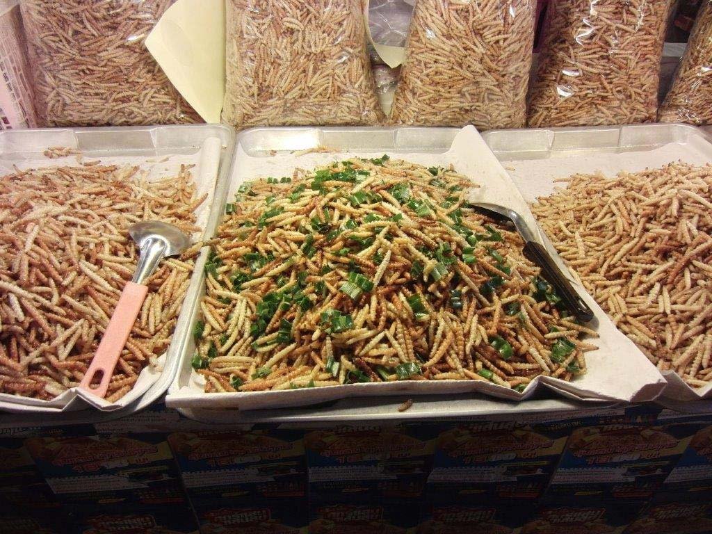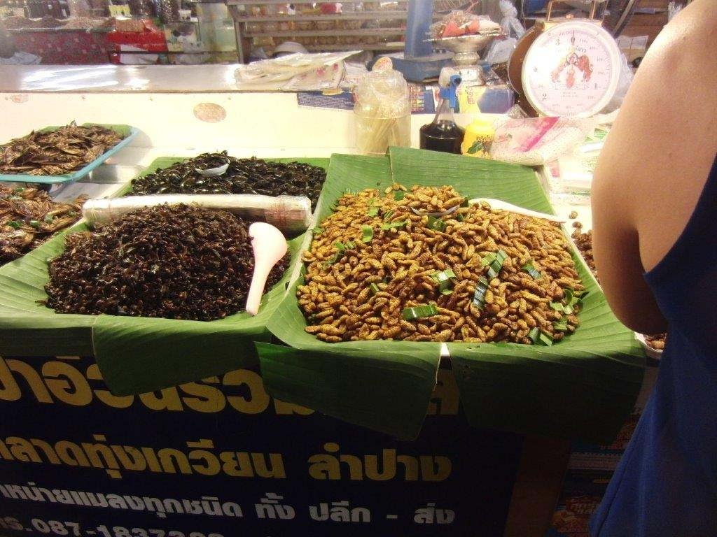 In Bangkok lernten wir die Liebe der Thai zu Gold und zu ihrem Buddha kennen, konnte diese aber nicht teilen. Man ißt hier fast alles. Die fritierten Würmer, Maden, Heuschrecken … habe ich aber nicht gekostet. Auch die Garküchen sahen alles andere als appetitlich aus. Überhaupt war es enorm schwierig, etwas zu essen zu finden, das nicht mit allerlei Undefinierbarem kombiniert war.