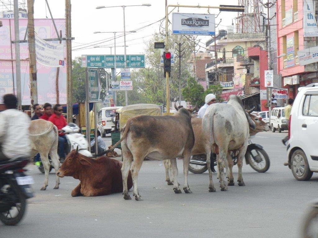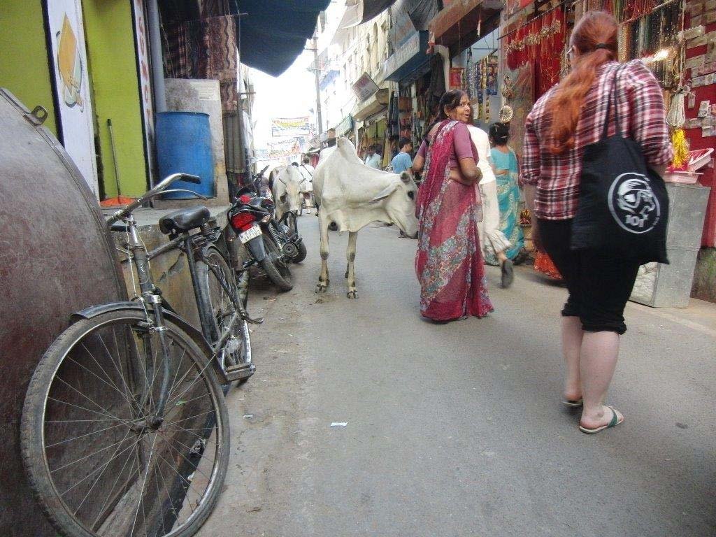 In Indien hatten wir unsere Freude am Straßenverkehr. Der ist hier niemals langweilig. Es gelten zwar ähnliche Regeln wie bei uns, die interessieren aber niemanden. An die allgegenwärtigen heiligen Kühe auf Autobahnen, in Orten und auch in jeder Shoppingmeile gewöhnt man sich schnell. An die ebenso üblichen Kuhfladen will man sich nicht so recht gewöhnen. Gerade auf Basaren war kaum Zeit, sich die farbenfrohen Produkte anzusehen. Man mußte ständig den Kühen, deren Hinterlassenschaften, den sportlichen Mopedfahrern und den Marktschreiern ausweichen. Dann durfte man auch den Anschluß zur Gruppe nicht verlieren.