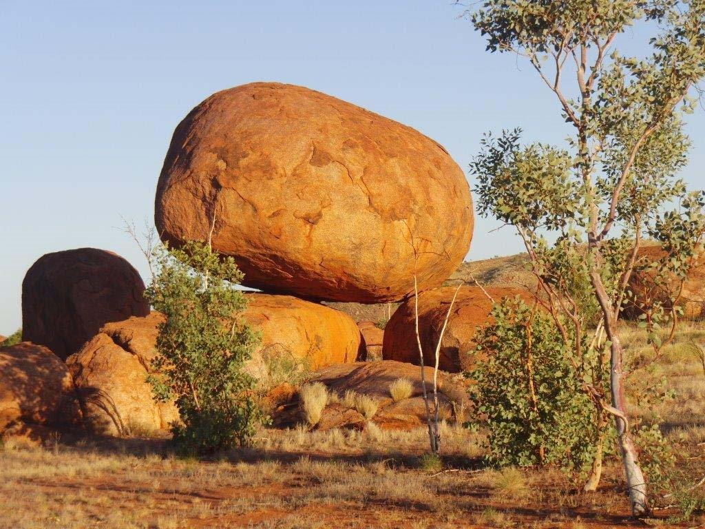 Ein sehr willkommener Zwischenstop waren die Thermalquellen in Mataranka. Etwa in der Mitte der riesigen Strecke übernachteten wir direkt an den Devil Marbels und konnten dort im Sonnenaufgang fotografieren. Diese großen Granitkugeln sind schon beeindruckend. Viel beeindruckender war aber der