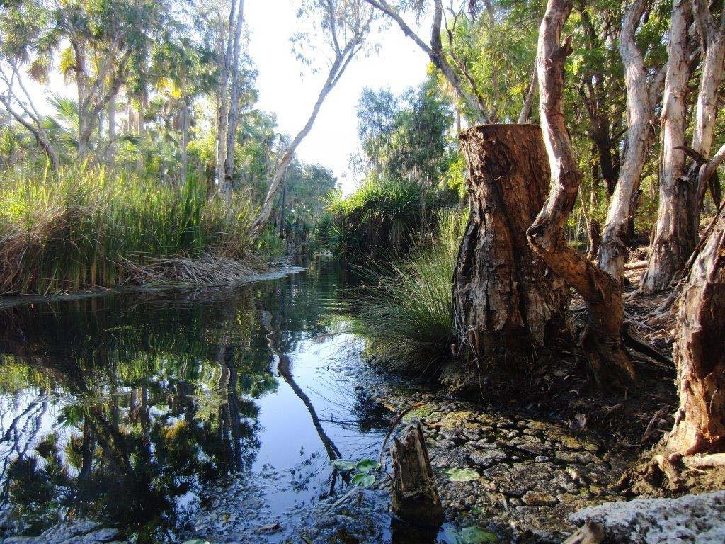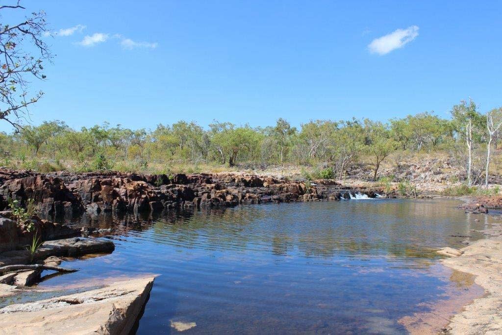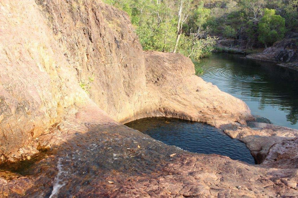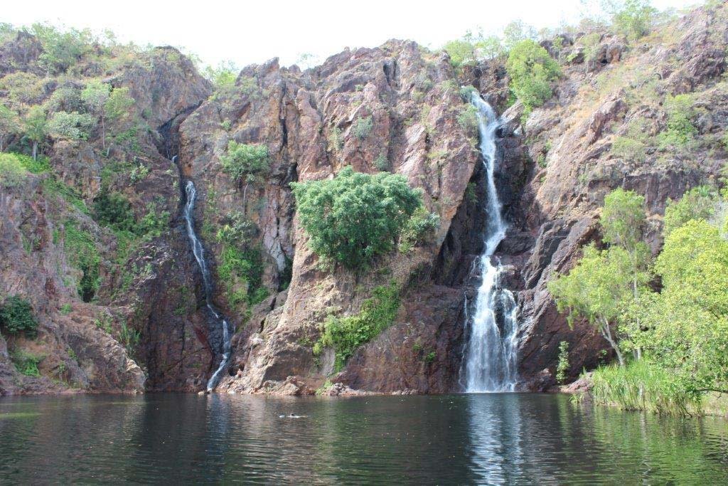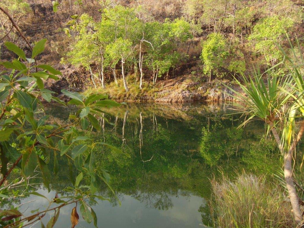 In Darwin begann dann unsere Reise im Geländewagen mit Dachzelt. Unser erstes Ziel war der kleinere Litchfield Park. Die idyllischen Orte mit dem klaren Gebirgswasser waren absolut sehenswert und schwimmen konnte man auch. Unsere erste Wasserdurchfahrt verursachte schon einiges Unbehagen. Faszinierend waren jeden Tag die Gesänge der Vögel. Leider war zu diesem Zeitpunkt die Strecke für Geländefahrzeuge Richtung Süden gesperrt.