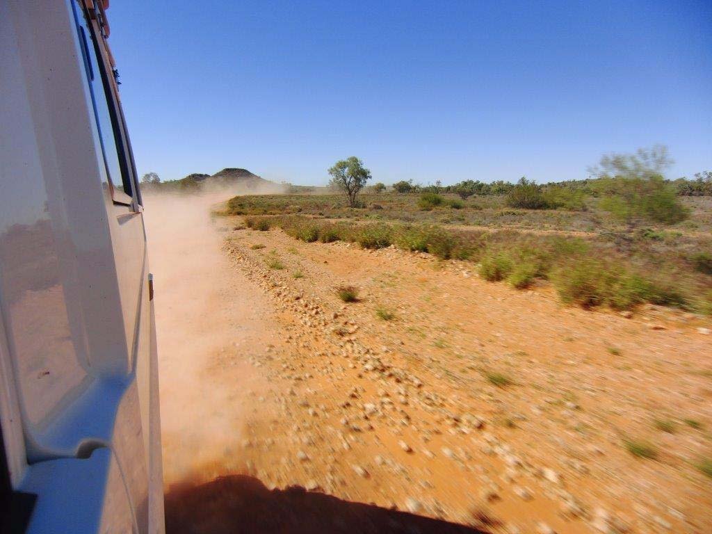 Die 4WD Strecke Richtung Alice Springs ist der Albtraum für jedes Auto. Abgesehen vom Staub leidet das Material hier mörderisch. Es kommen auch nicht alle Reisenden heil ans Ziel. Man sieht öfter Schrottautos am Wegrand liegen.